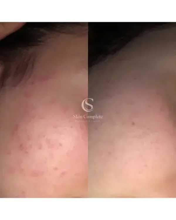 - Blauw licht (470 nm) – Werkt antibacterieel door cutibacterium acnes (de bacterie die acne veroorzaakt) te neutraliseren. Vermindert ontstekingen en helpt bij het voorkomen van nieuwe onzuiverheden.